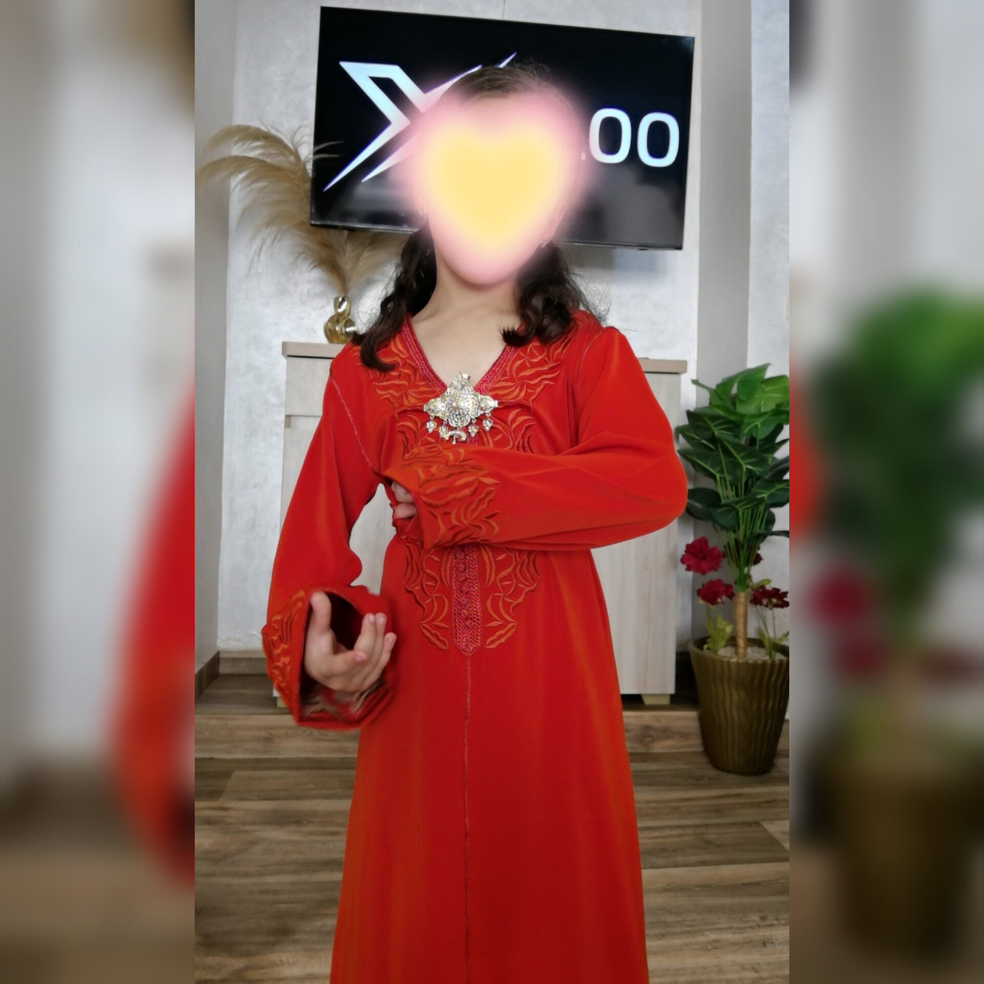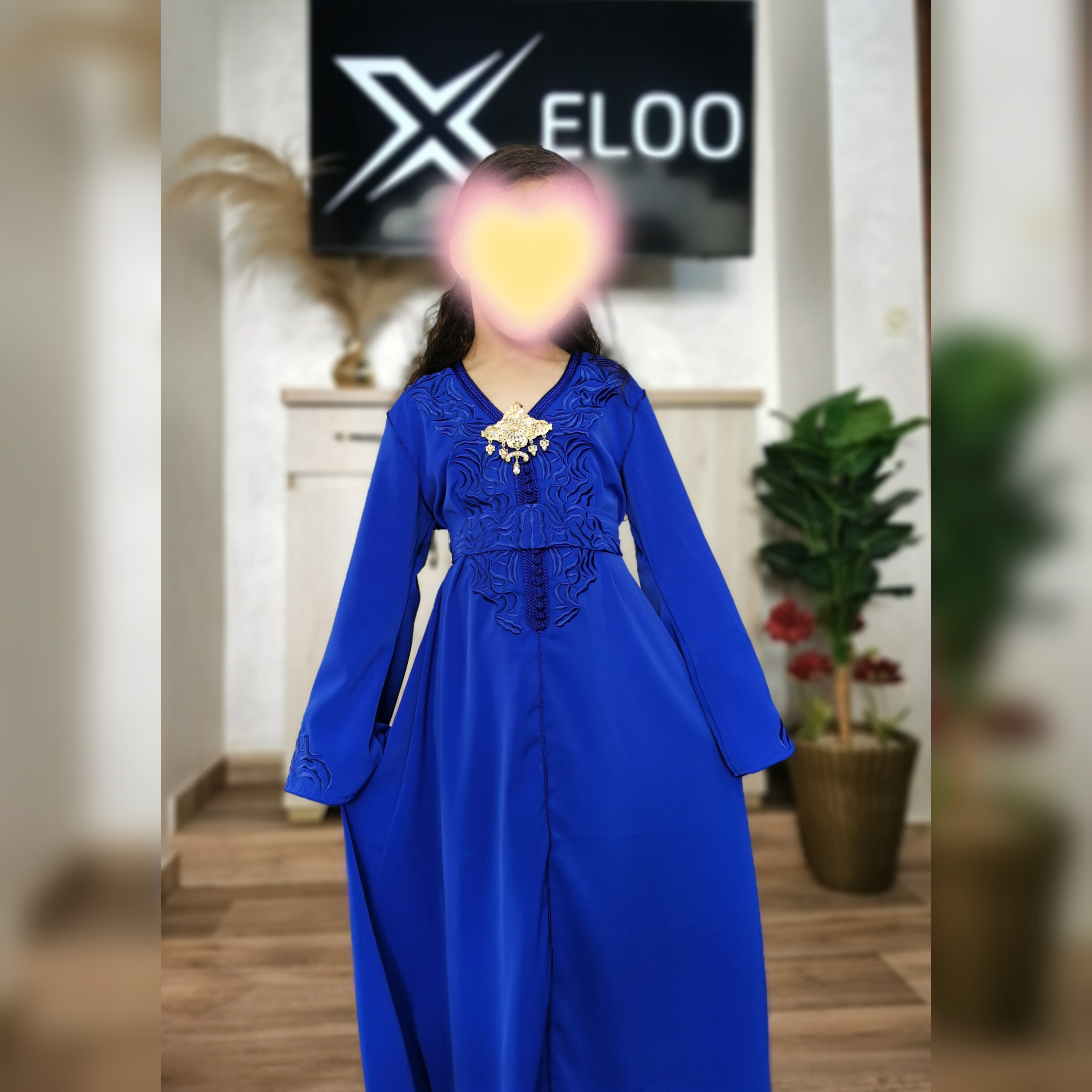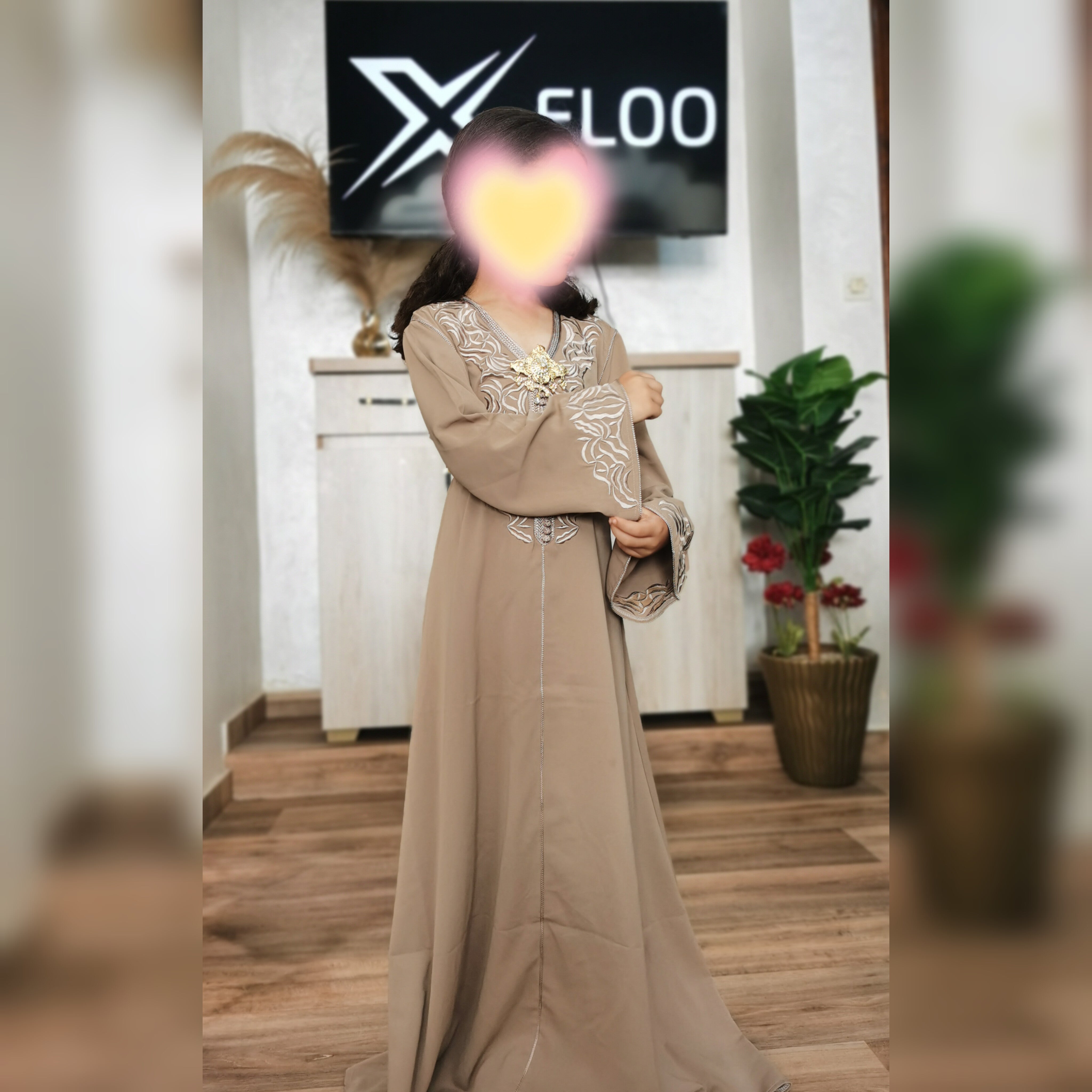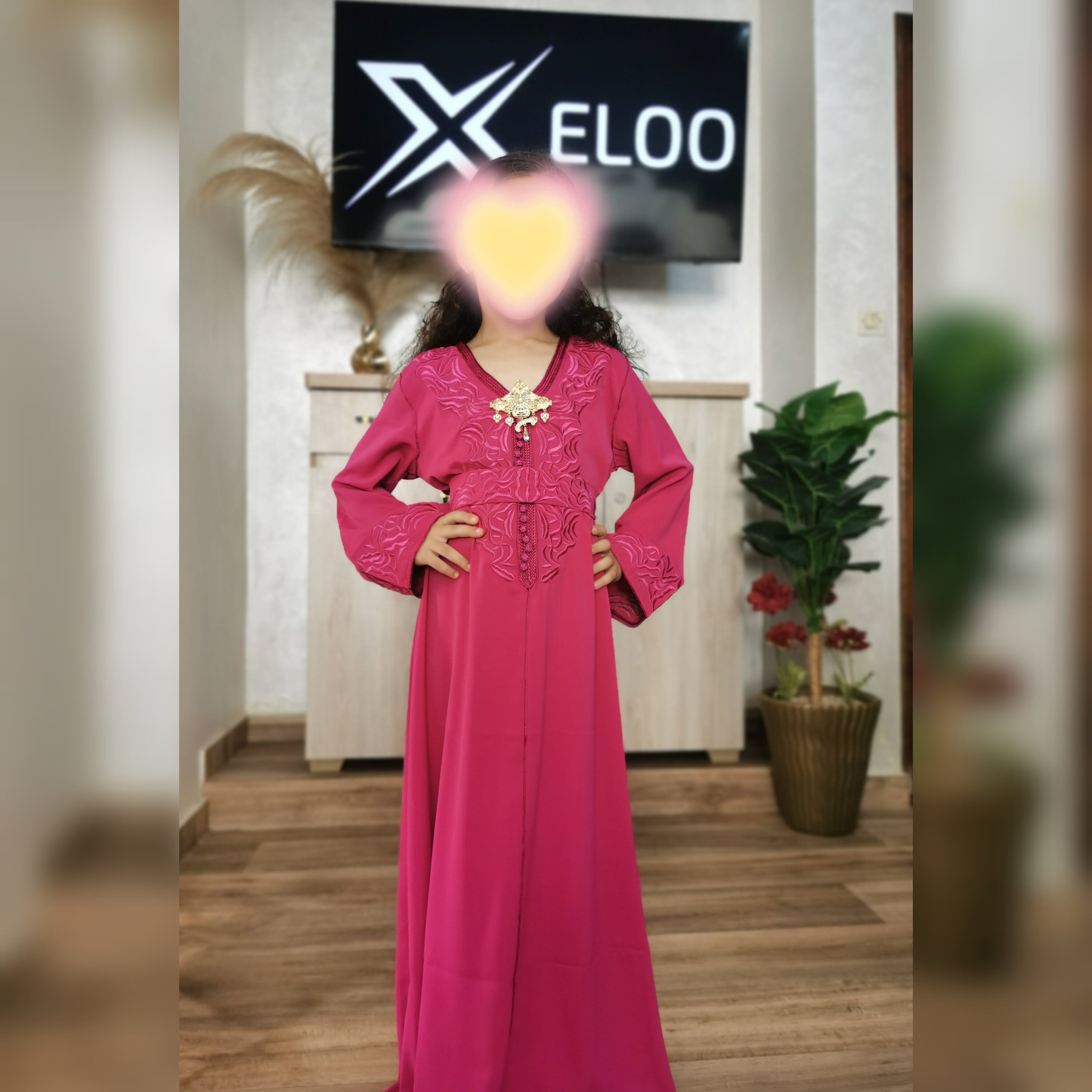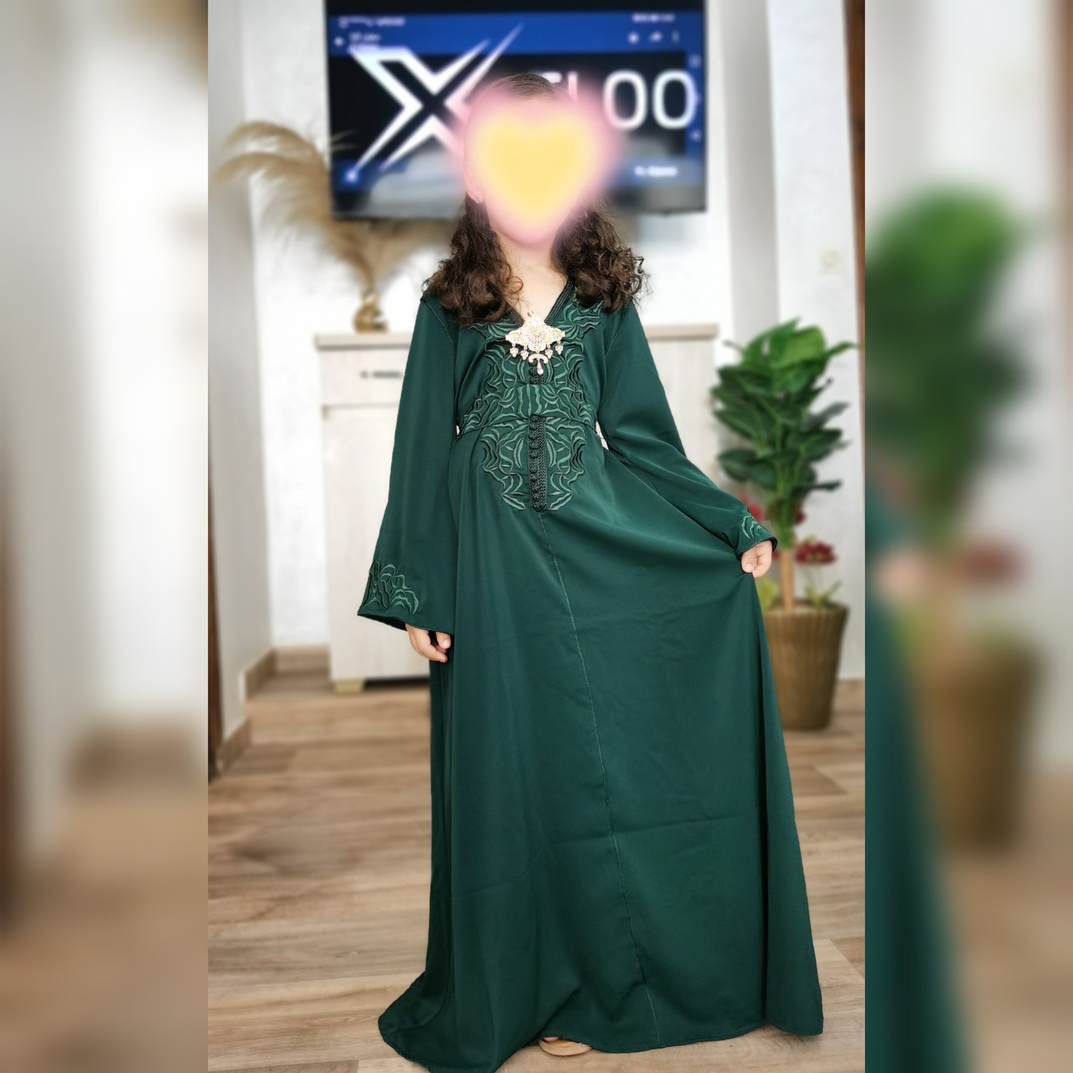 Le caftan Zayna pour enfant est fabriqué en crêpe de qualité supérieure, offrant une texture douce et confortable.