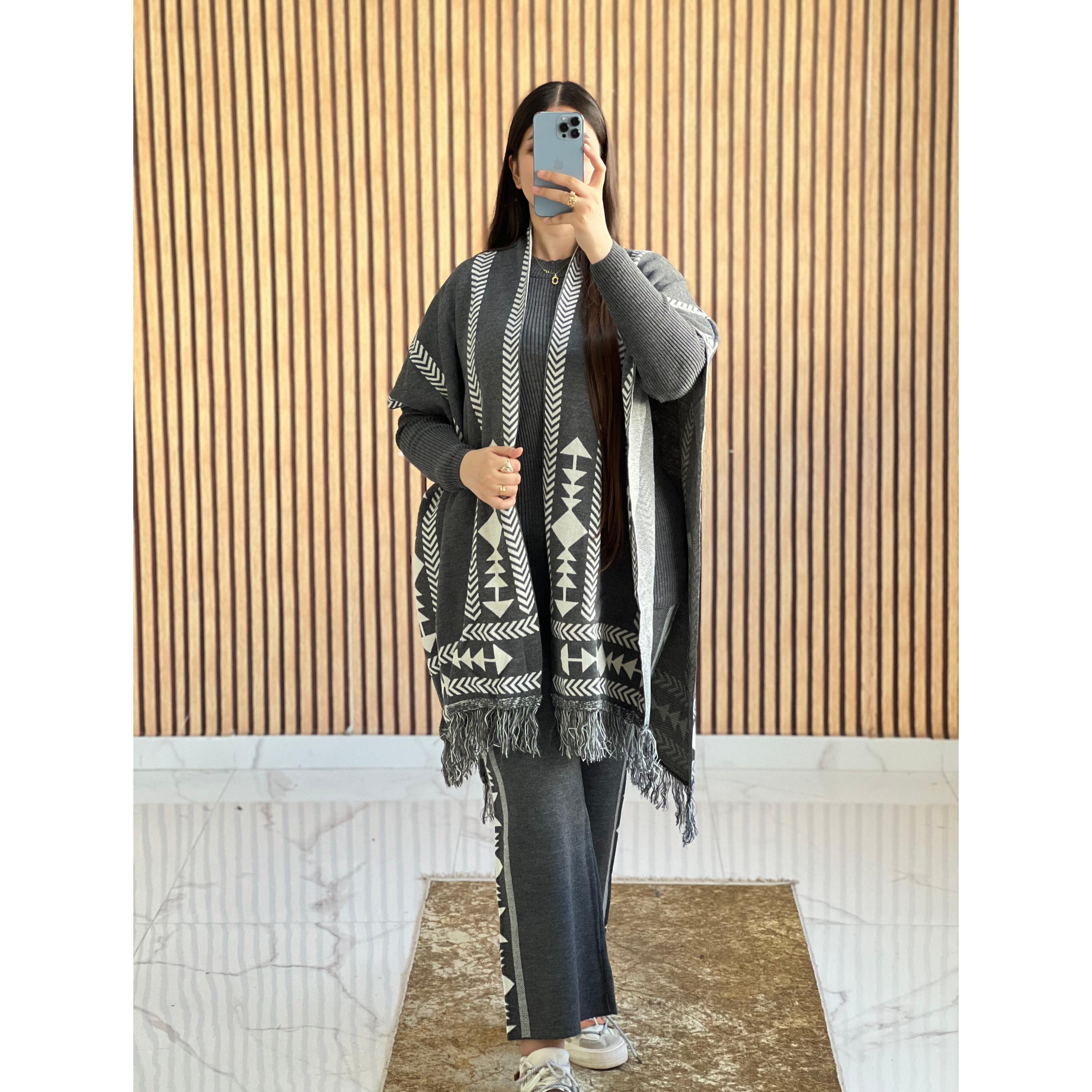 Velouté est un ensemble 3 pièces sophistiqué et confortable, conçu pour sublimer votre garde-robe. Composé d’un haut tricoté, d’un pantalon fluide et d’un châle enveloppant, cet ensemble incarne l’élégance intemporelle et la douceur incomparable de la maille.